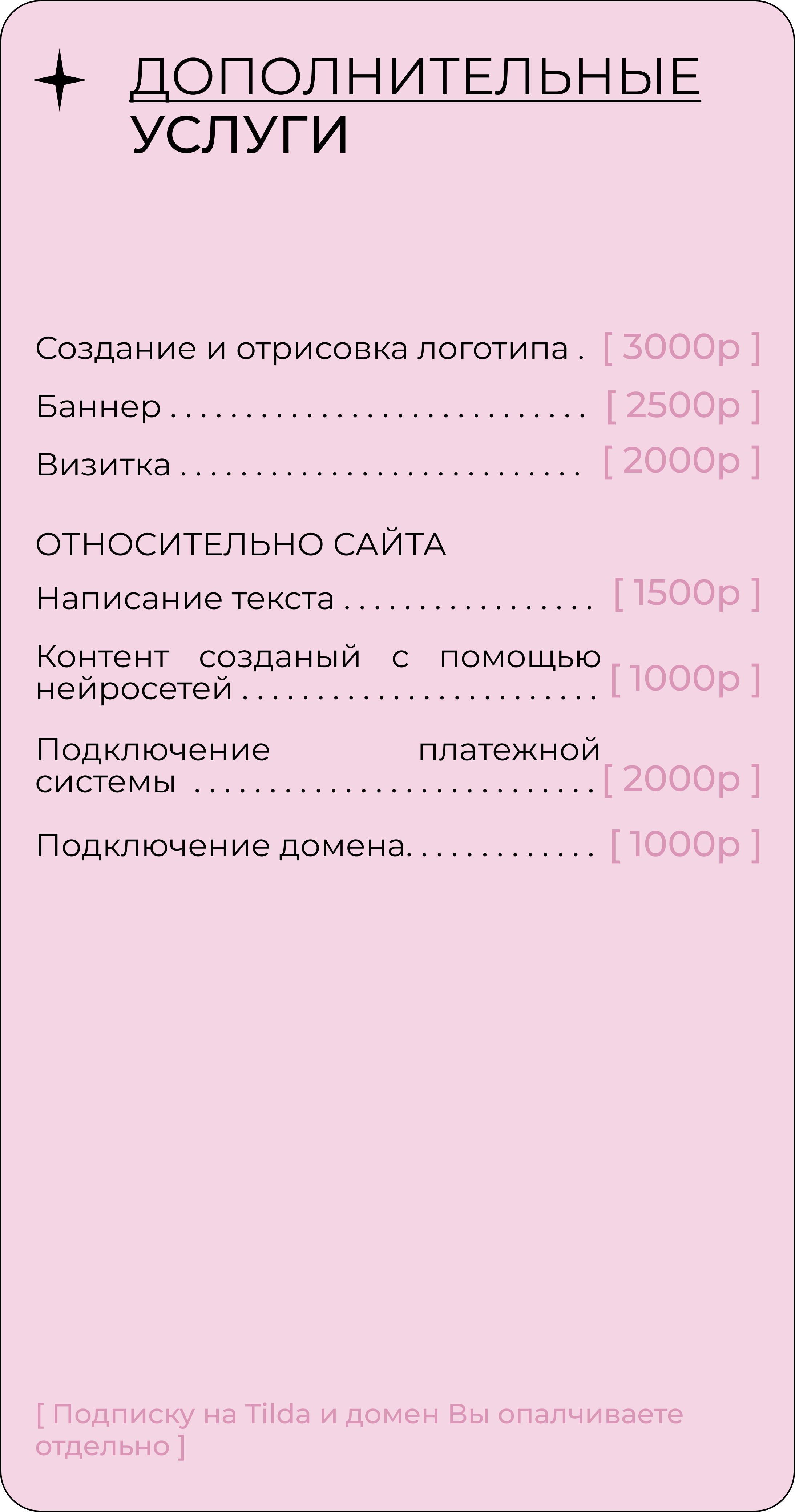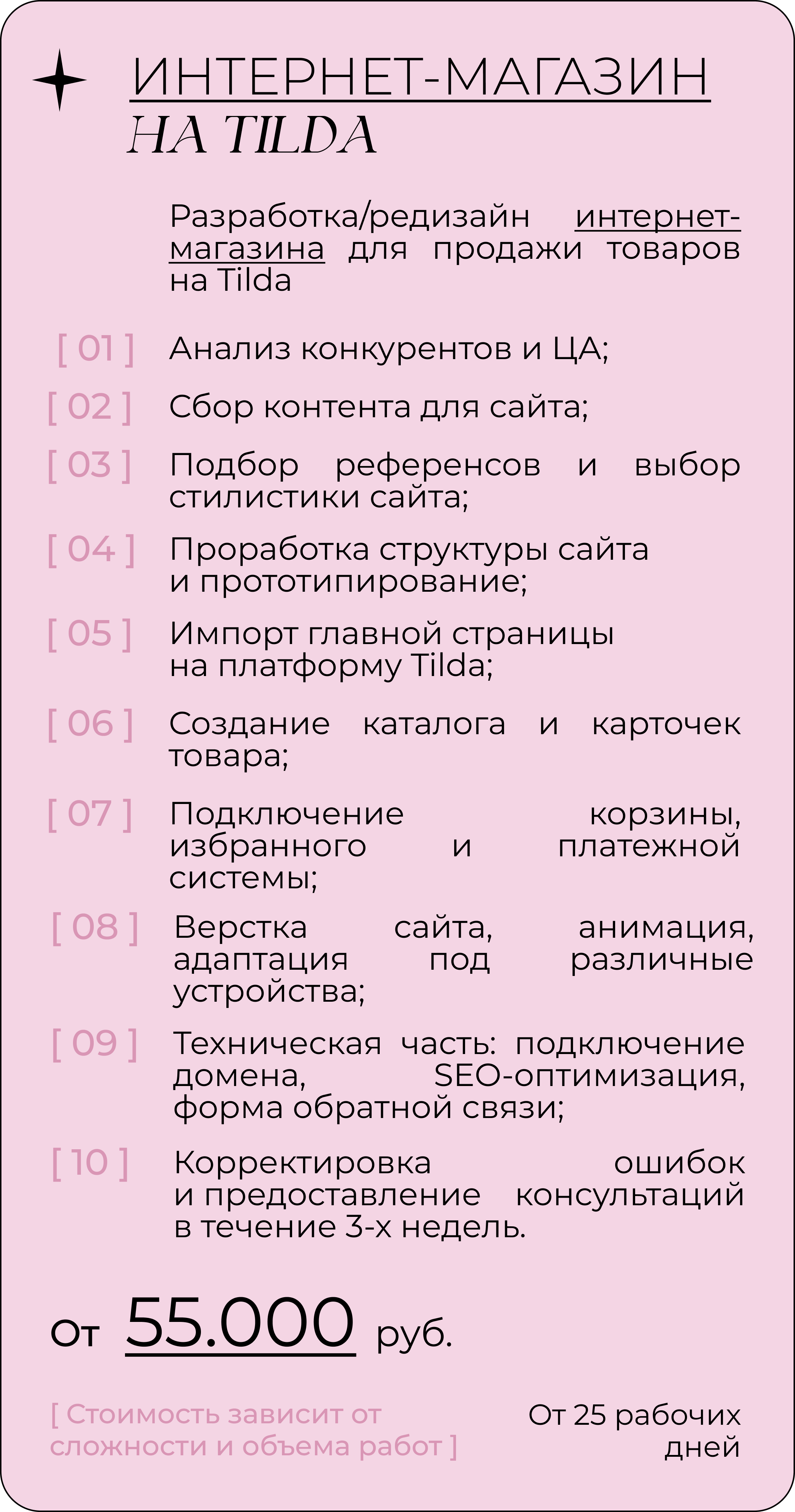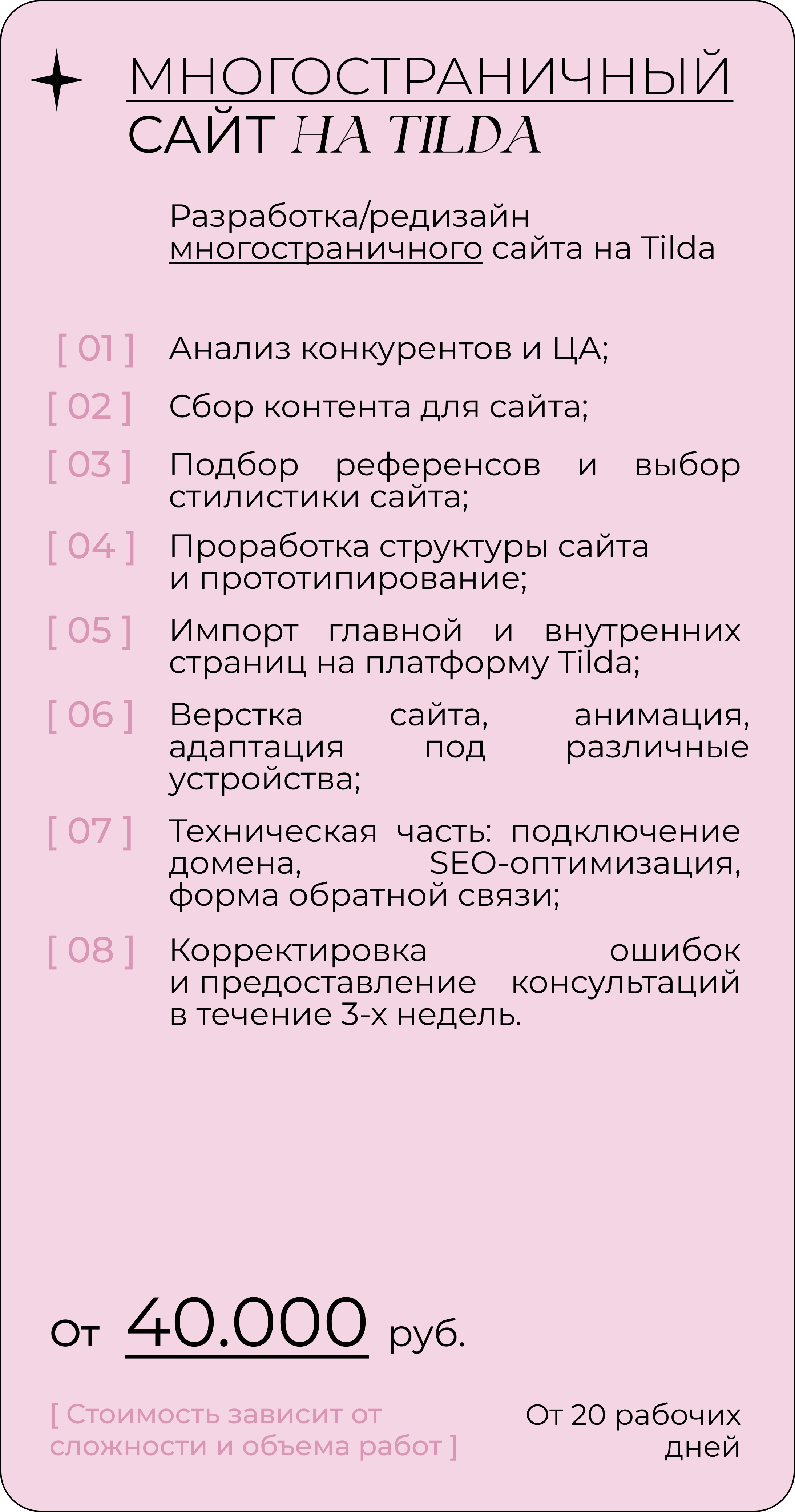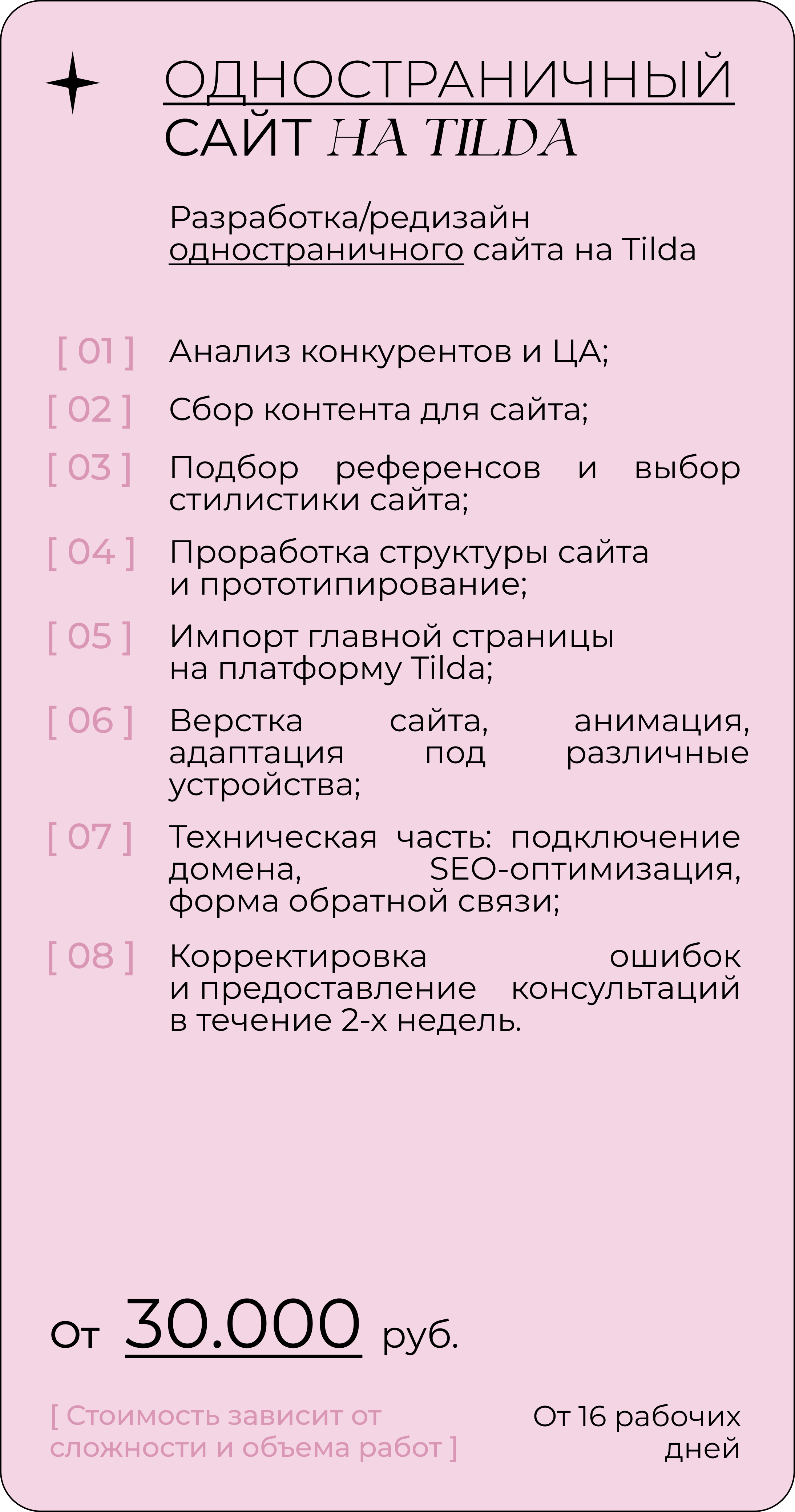 занимаюсь созданием лендингов и многостраничных сайтов на платформе Tilda.