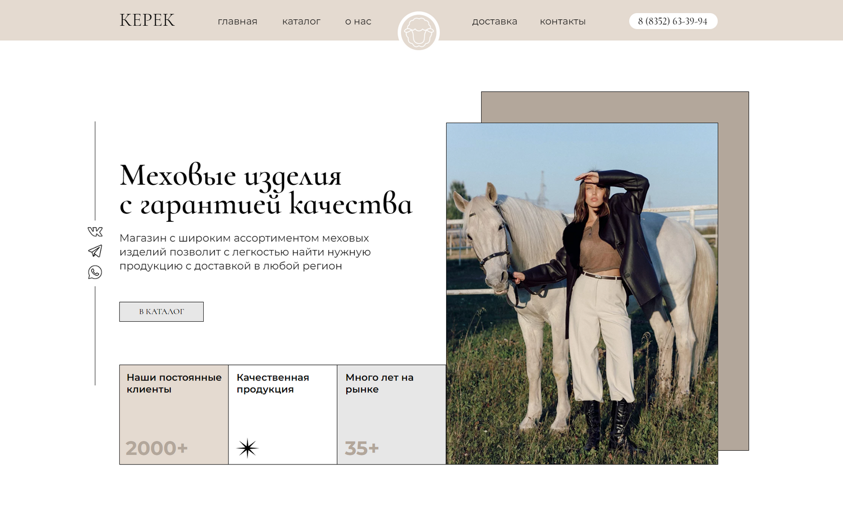 Многостраничный сайт-магазин для Меховой фабрики «Керек». Данный сайт имеет удобный и понятный интерфейс, стильный дизайн и возможность покупки товаров